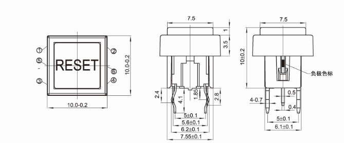额定功率:50mA DC30V 绝缘电阻:≥100MΩ 绝缘强度:AC250V(50-60Hz) 1Minute 温度范围:-25℃ 到+85℃ 寿命:100,000 Cycles 行程:0.25±0.1mm
