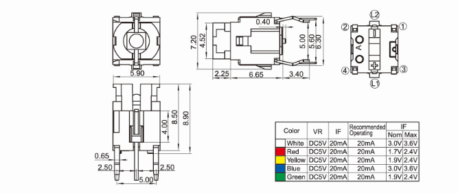 额定功率:50mA DC30V 绝缘电阻:≥100MΩ 绝缘强度:AC250V(50-60Hz) 1Minute 寿命:100,000 Cycles 行程:0.25±0.1mm
