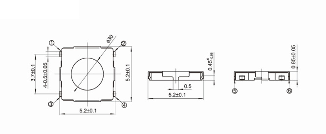 4x4系列 额定功率:50mA DC12V 绝缘电阻:≥100MΩ 绝缘强度:AC250V 1Minute 温度范围:-20℃ 到+70℃ 寿命:50,000 -100,000Cycles 行程:0.25±0.1mm
