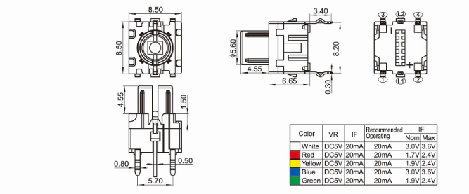 额定功率:50mA DC30V 绝缘电阻:≥100MΩ 绝缘强度:AC250V(50-60Hz) 1Minute 温度范围:-25℃ 到+85℃ 寿命:100,000 Cycles 行程:0.25±0.1mm
